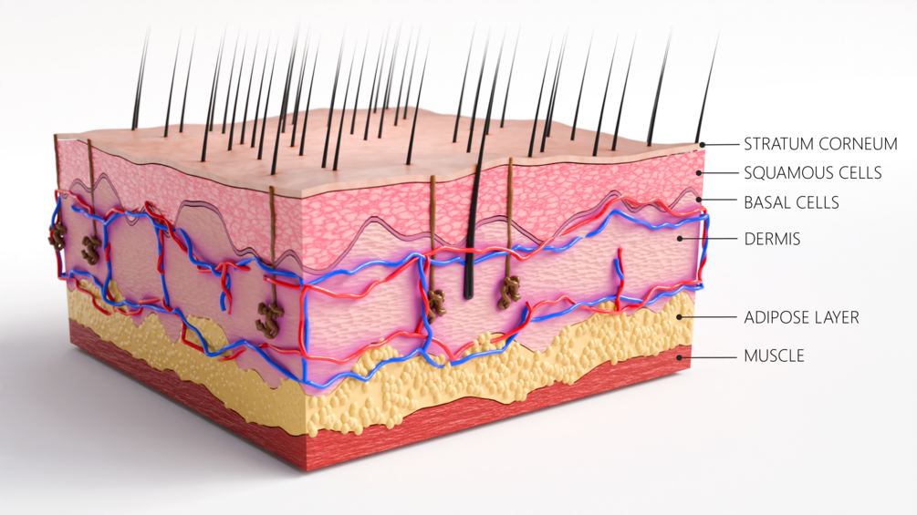 Overview: A Geometry Node (GN) modifier to procedurally create cross-sectional illustrations of human skin.